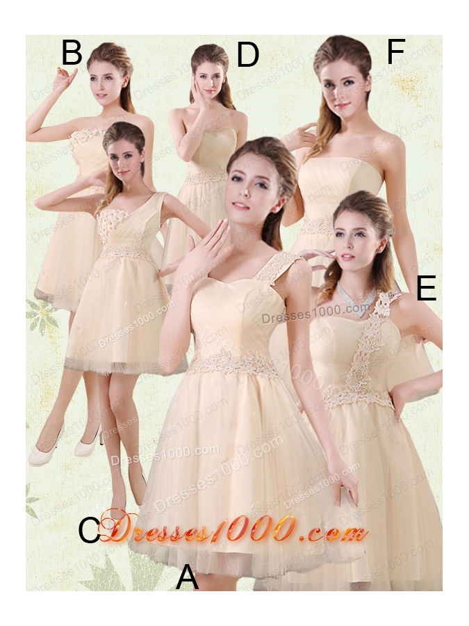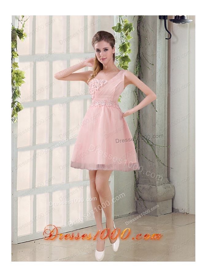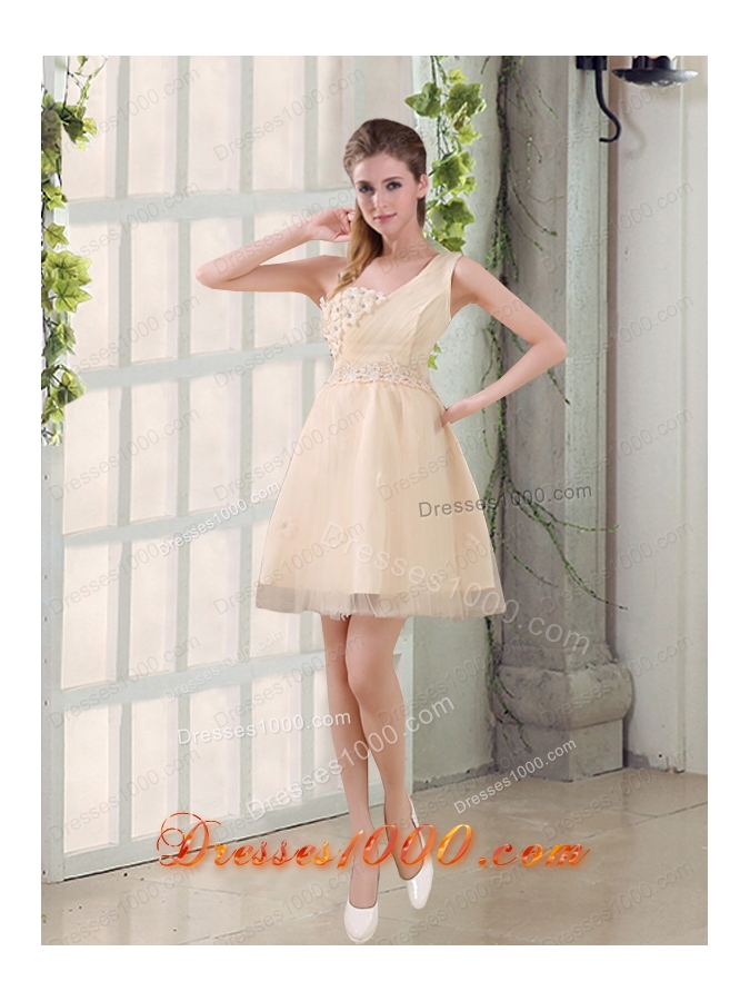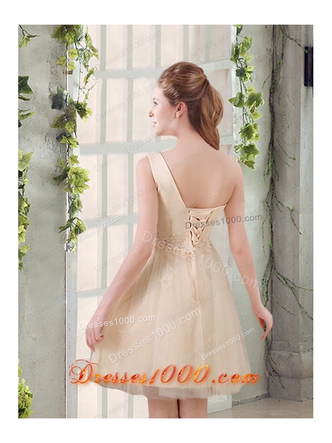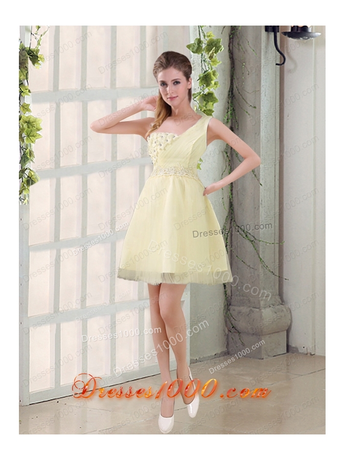 2015 Champagne One Shoulder A Line Appliques Prom Dress