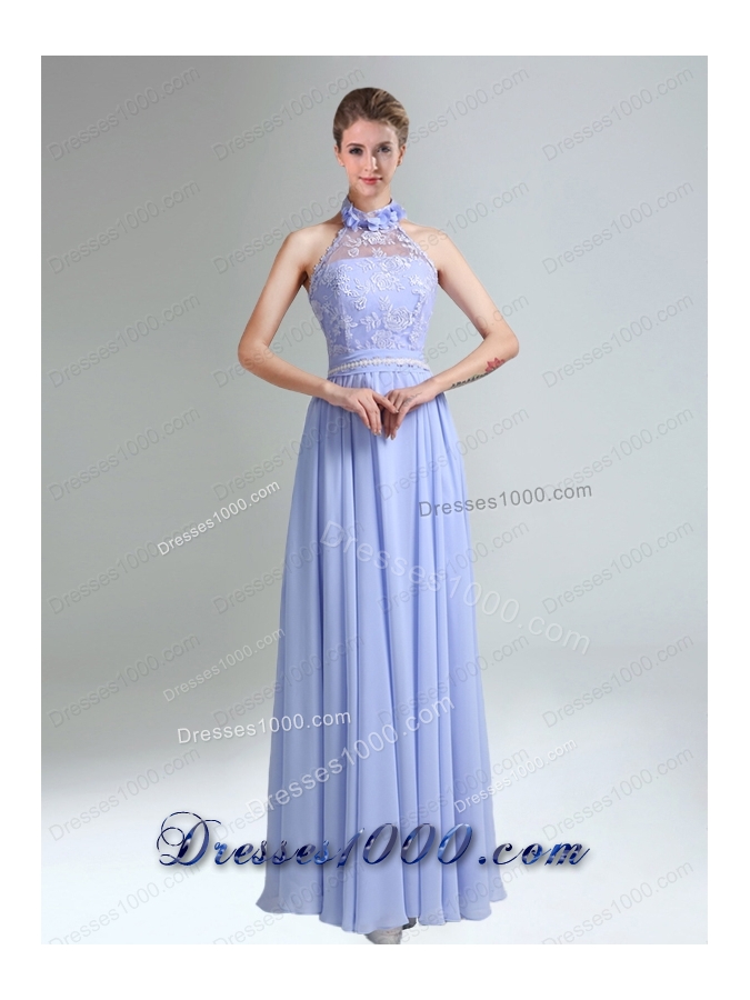 Belt and Lace Halter Empire Lace Up Prom Dress for 2015