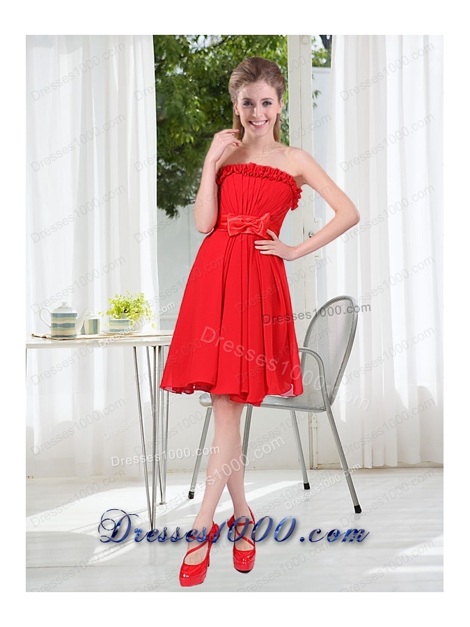 Wonderful Ruching Strapless Bowknot Prom Dress in Red