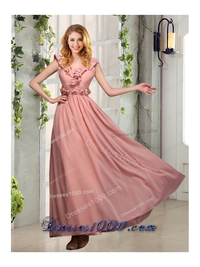 V Neck Empire Appliques Prom Dresses with Floor Length