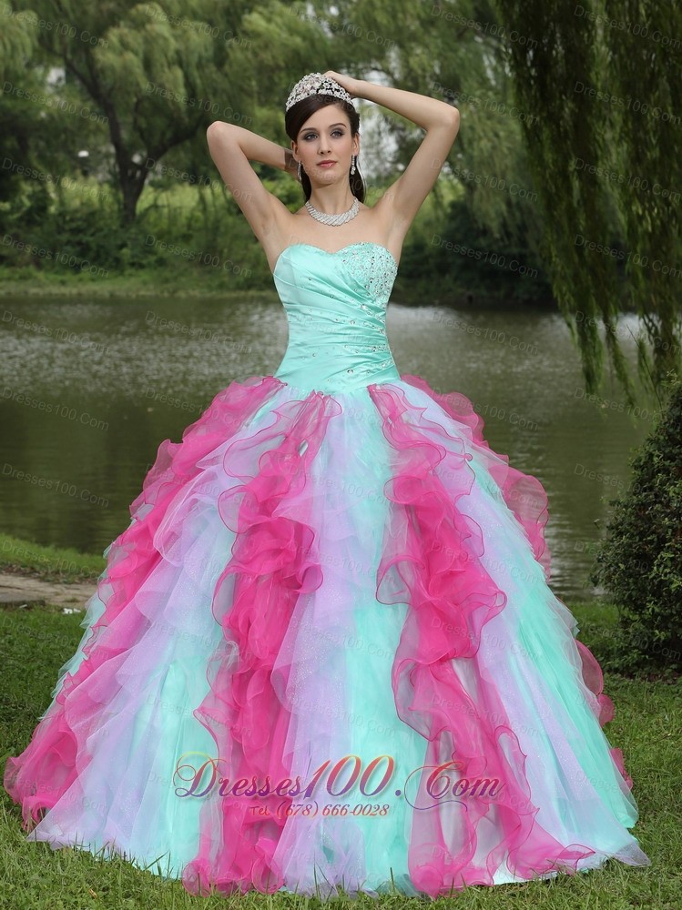 Multi-color Organza Dress for Graduation With Ruffle Decorate