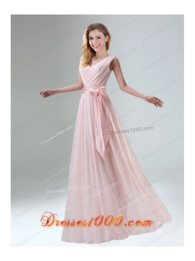 Most Beautiful Chiffon Light Pink Empire Prom Dress with Ruching