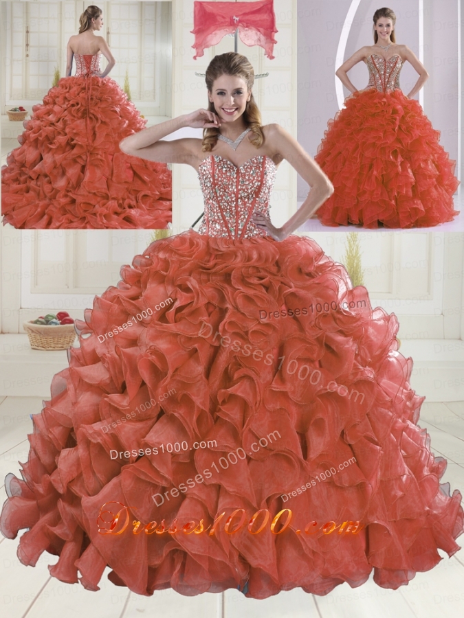 2015 Sweetheart Brush Train Red Quinceanera Dresses