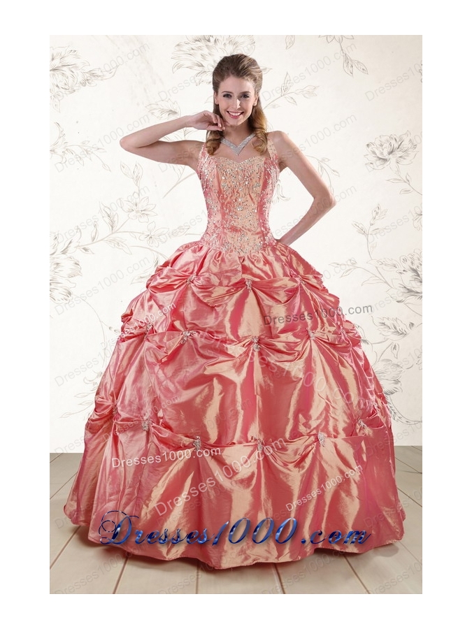 Beautiful Beading and Appliques Watermelon Red Sweet 16 Dresses for 2015