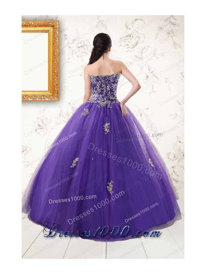 New Arrival Purple Quinceanera Dresses with Appliques and Beading for 2015