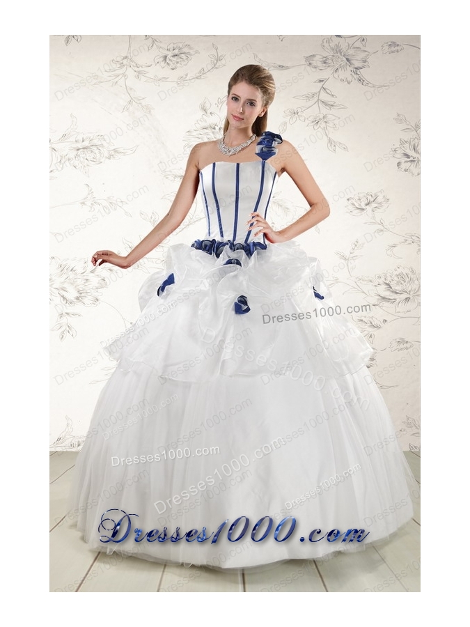 Elegant White One Shoulder Hand Made Flower Quinceanera Dress for 2015