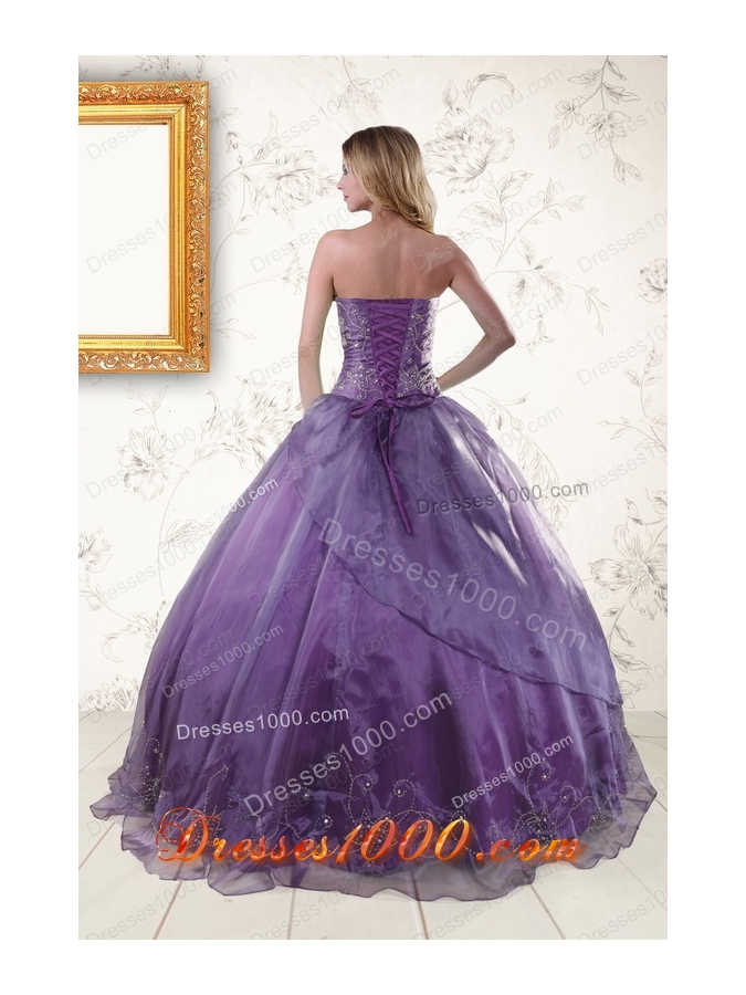 2015 Elegant Purple Strapless Appliques Quinceanera Dresses