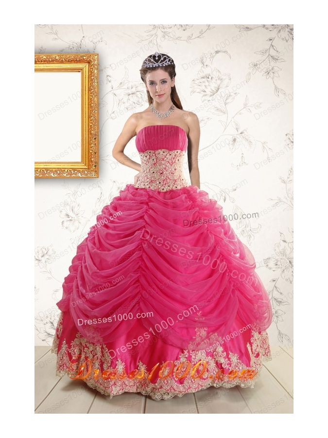 Exquisite Lace Appliques Hot Pink Quinceanera Gowns for 2015