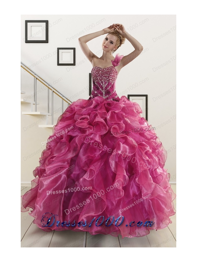 In Stock Beading One Shoulder Sweet 16 Dresses in Fuchsia