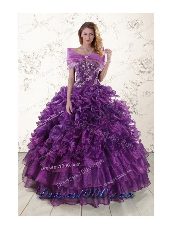 Most Popular Purple Strapless 2015 Quinceanera Gowns with Appliques