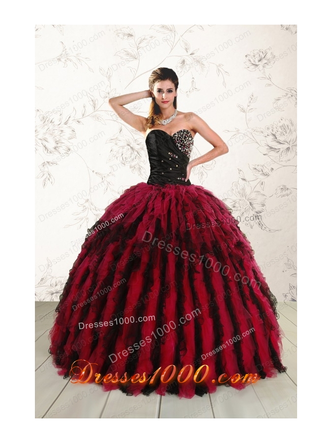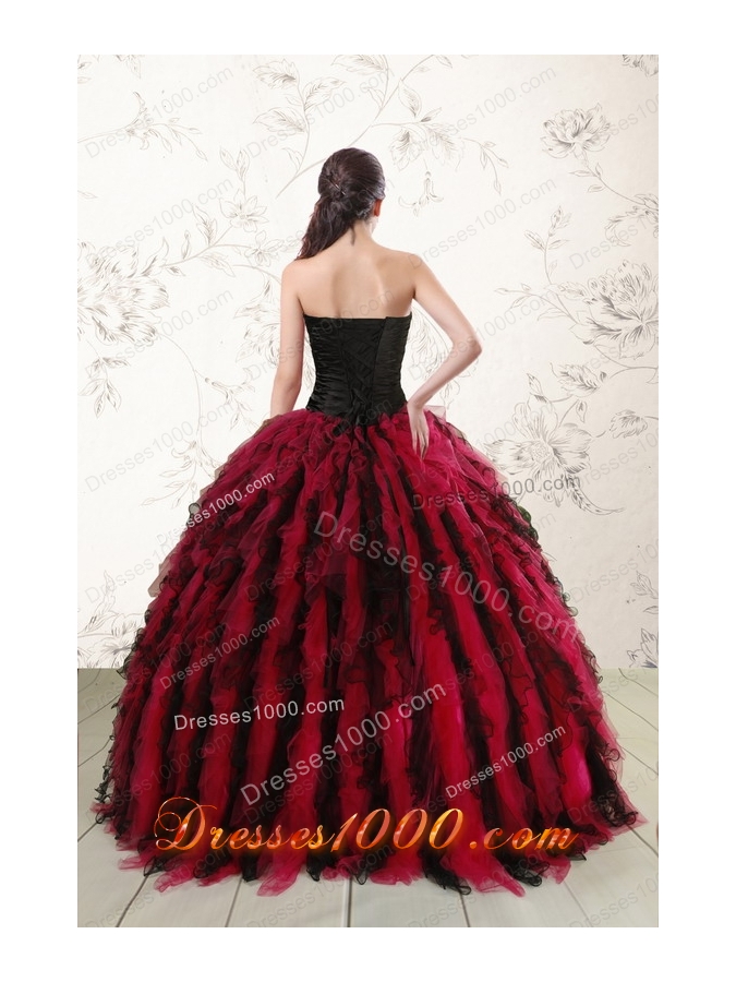 most popular Sweetheart Ruffles and Beaded Quinceanera Gowns in Red and Black