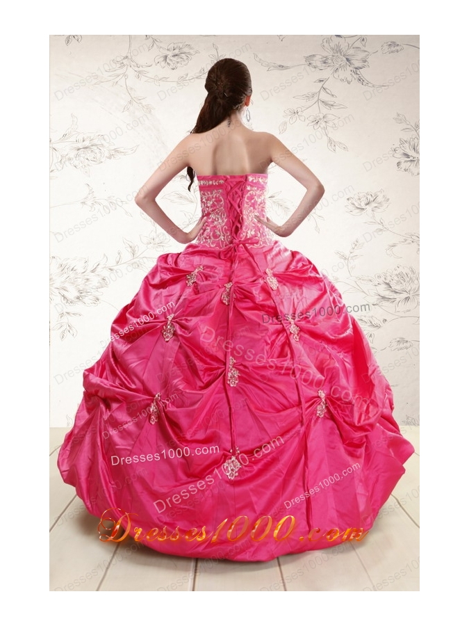 fashionable Strapless Hot Pink Quinceanera Dress with Appliques for 2015
