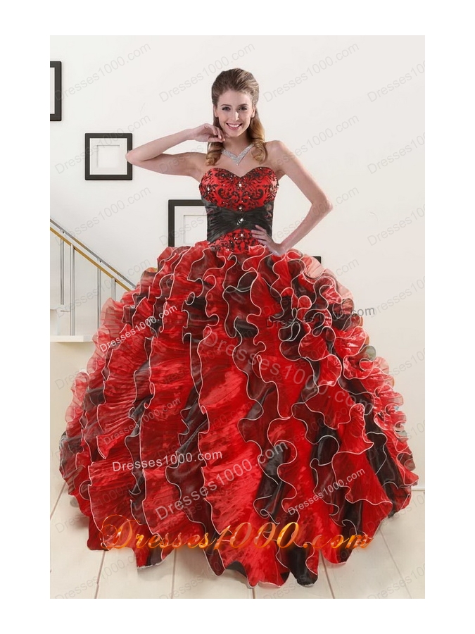 fashionable Beaded Sweetheart Organza Quinceanera Dress in Multi-color