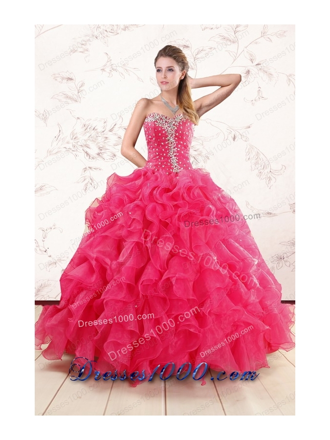Fashionable Beading and Ruffles Sweet 15 Dresses in Hot Pink