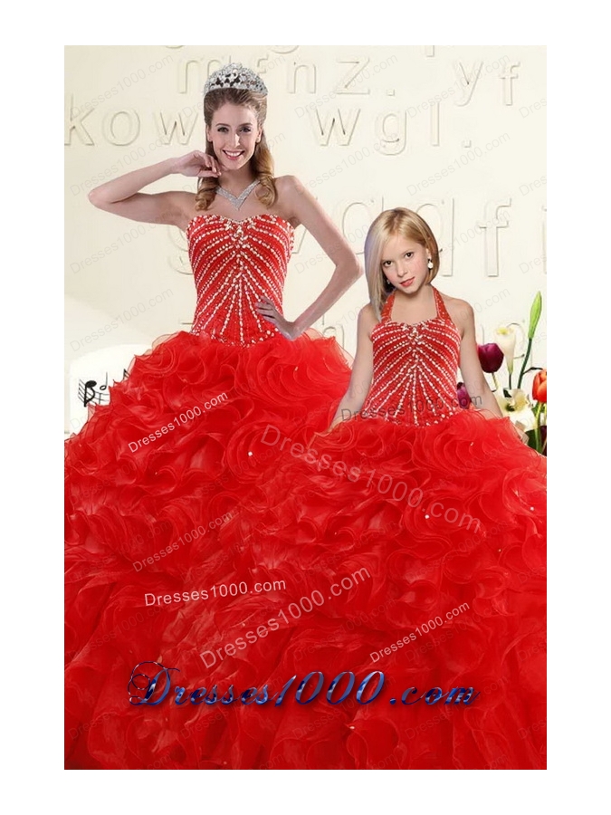 Popular Beading and Ruffles Red Princesita Dress for 2015