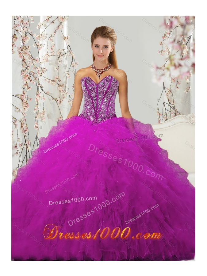 Luxurious and Detachable Beading and Ruffles Fuchsia Sweet 16 Dresses