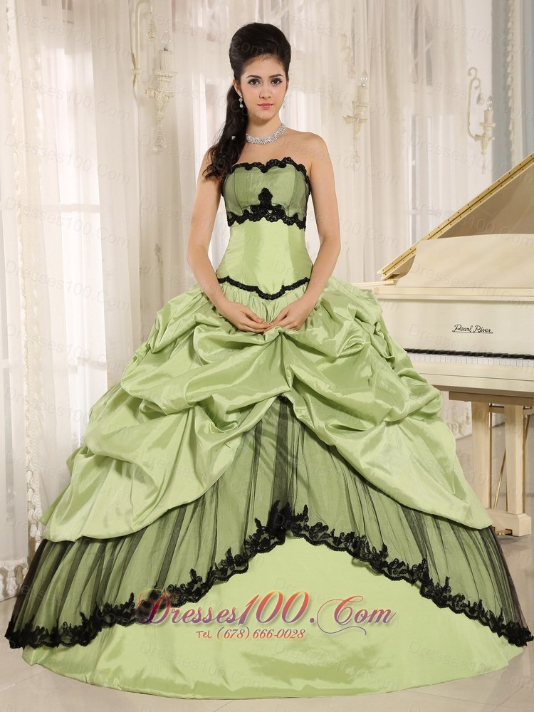 Taffeta Yellow Green Pick-ups Appliques Quinceanera Dress