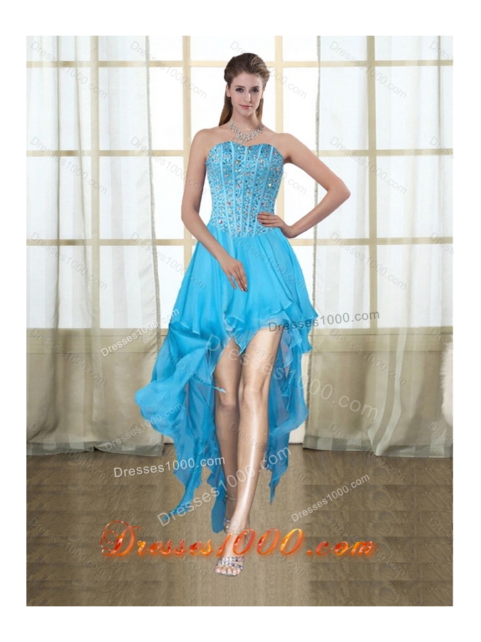 2015 Beautiful Sweetheart High Low Baby Blue Prom Dresses with Beading