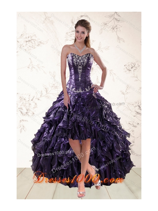 2015 Beautiful Purple High Low Prom Dresses for Spring