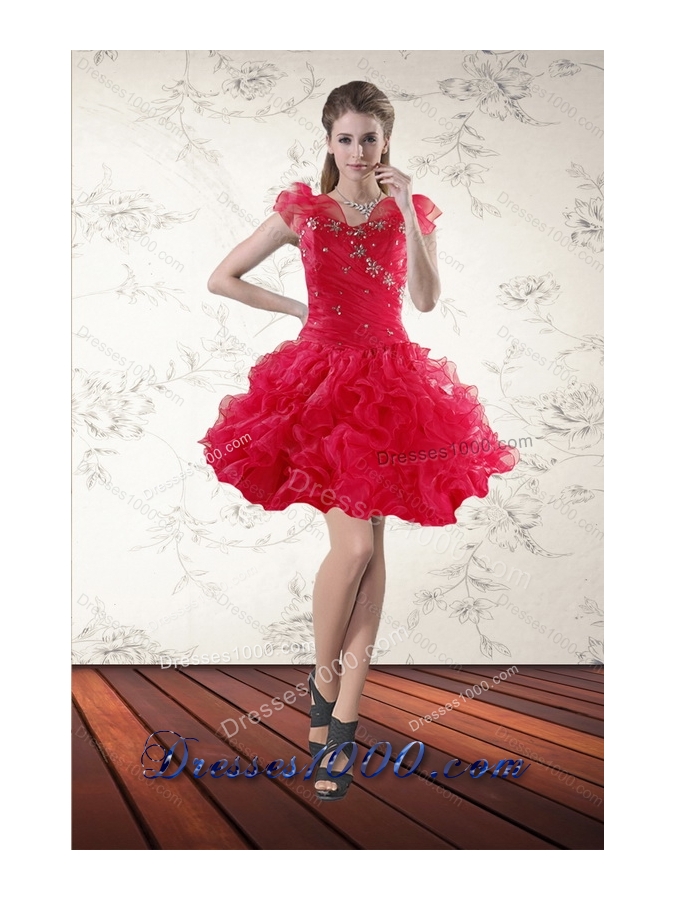 Beading Sweetheart Red 2015 Prom Gown with Ruffled Layers