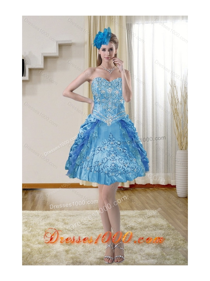 2015 Elegant Sweetheart Teal Prom Dresses with Embroidery