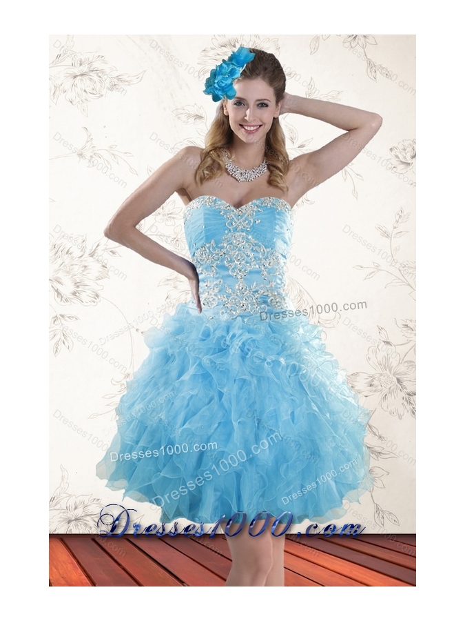 2015 Spring Baby Blue Sweetheart Prom Dresses with Embroidery