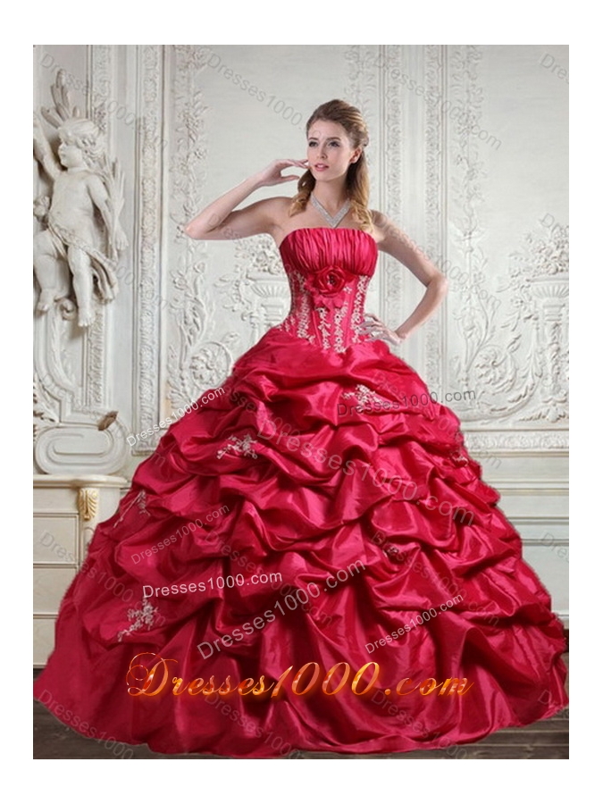 2015 Unique Appliques and Pick Ups Red Sweet 16 Dress