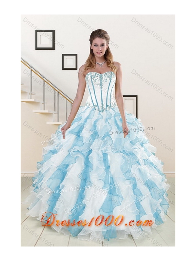 2015 Pretty Appliques and Ruffles Sweet Sixteen Dresses in Multi Color