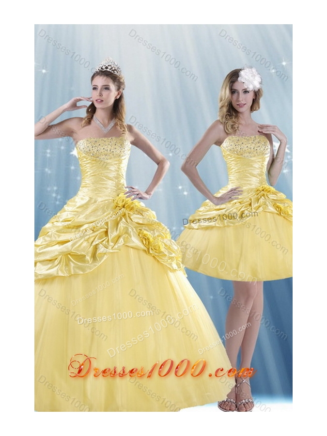 Unique and Detachable Strapless 2015 Beading Quince Dresses with Beadings and Pick Ups