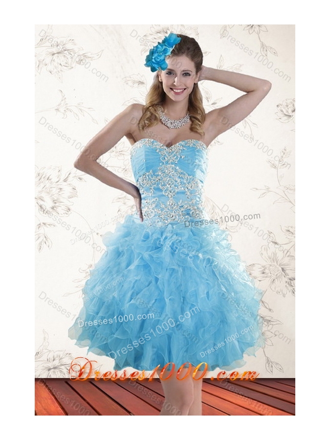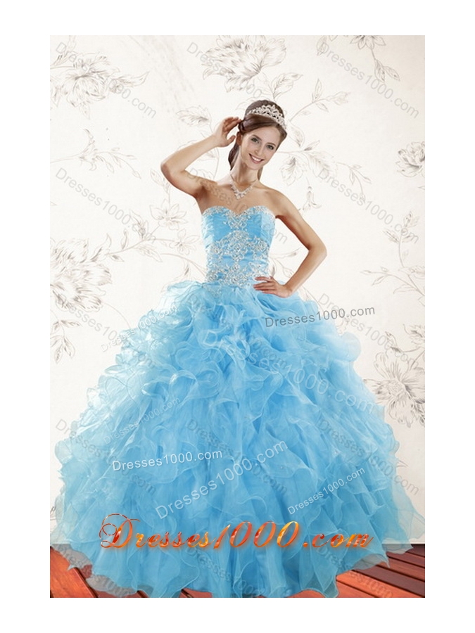 Unique and Detachable Sophisticated Appliques and Ruffles Baby Blue Sweet 15 Dresses
