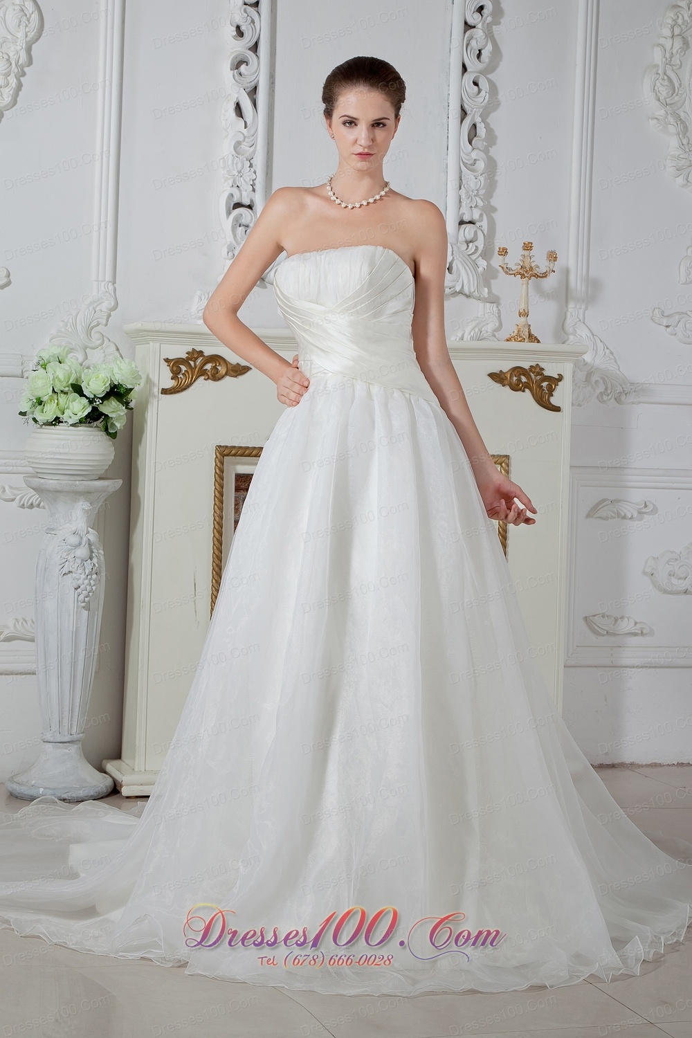 Wrapped Style Wedding Bridal Gowns Strapless Court Train