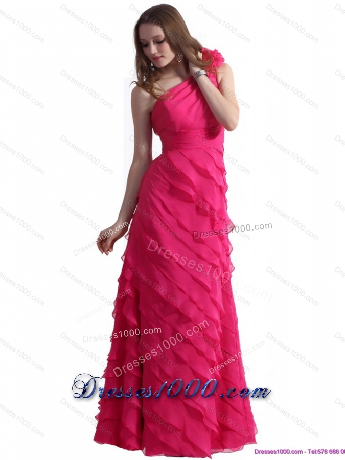 One Shoulder Prom Dresses with Ruffled Layers and Hand Made Flower