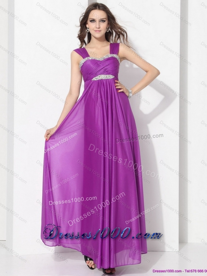 Romantic Empire Floor Length Prom Dress with Ruching and Beading