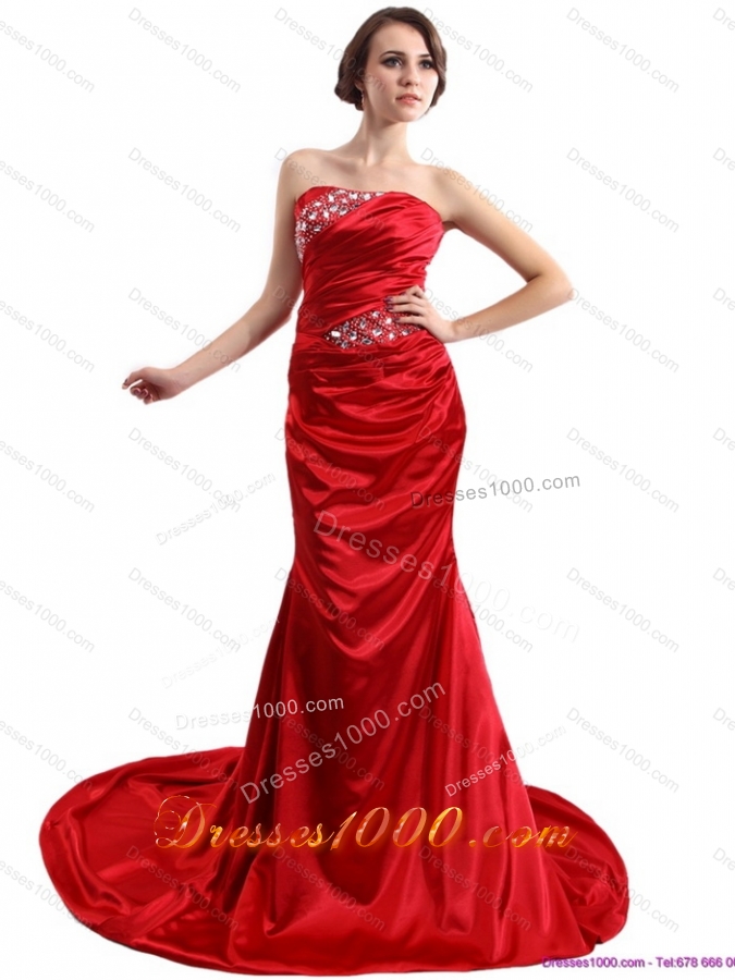 2015 Popular Ruching and Beading Prom Dress with Brush Train