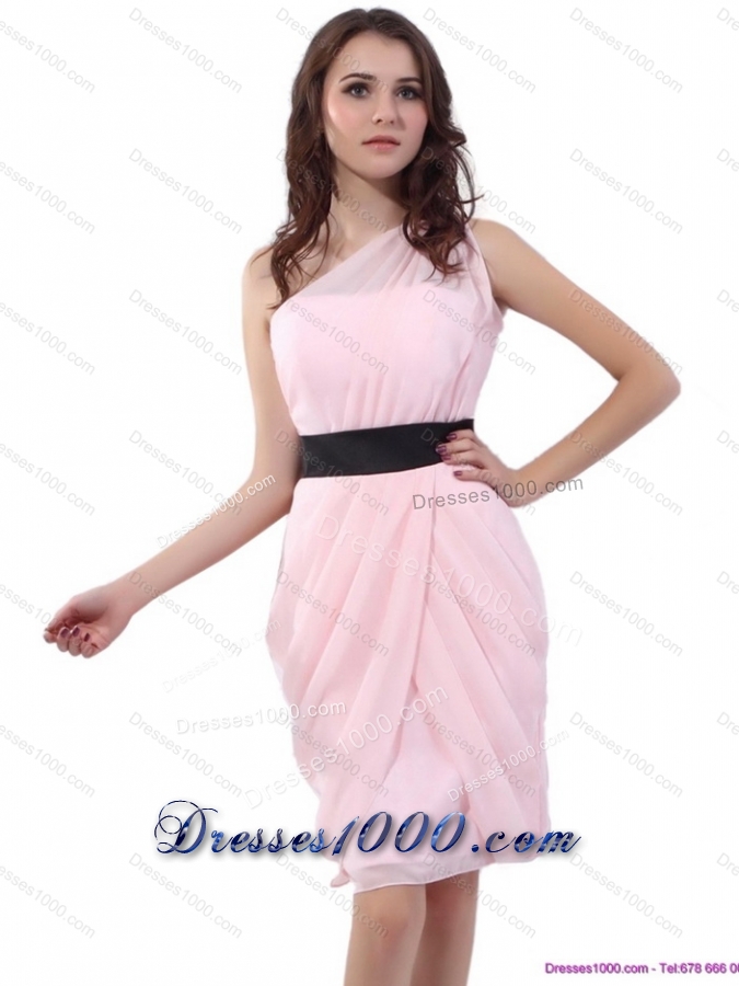 2015 Baby Pink One Shoulder Short Dama Dresses with Ruching