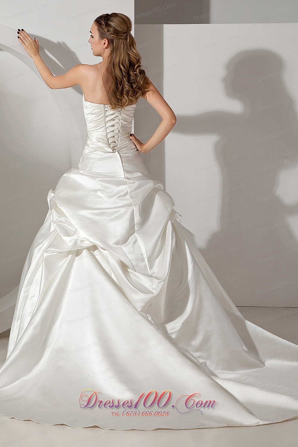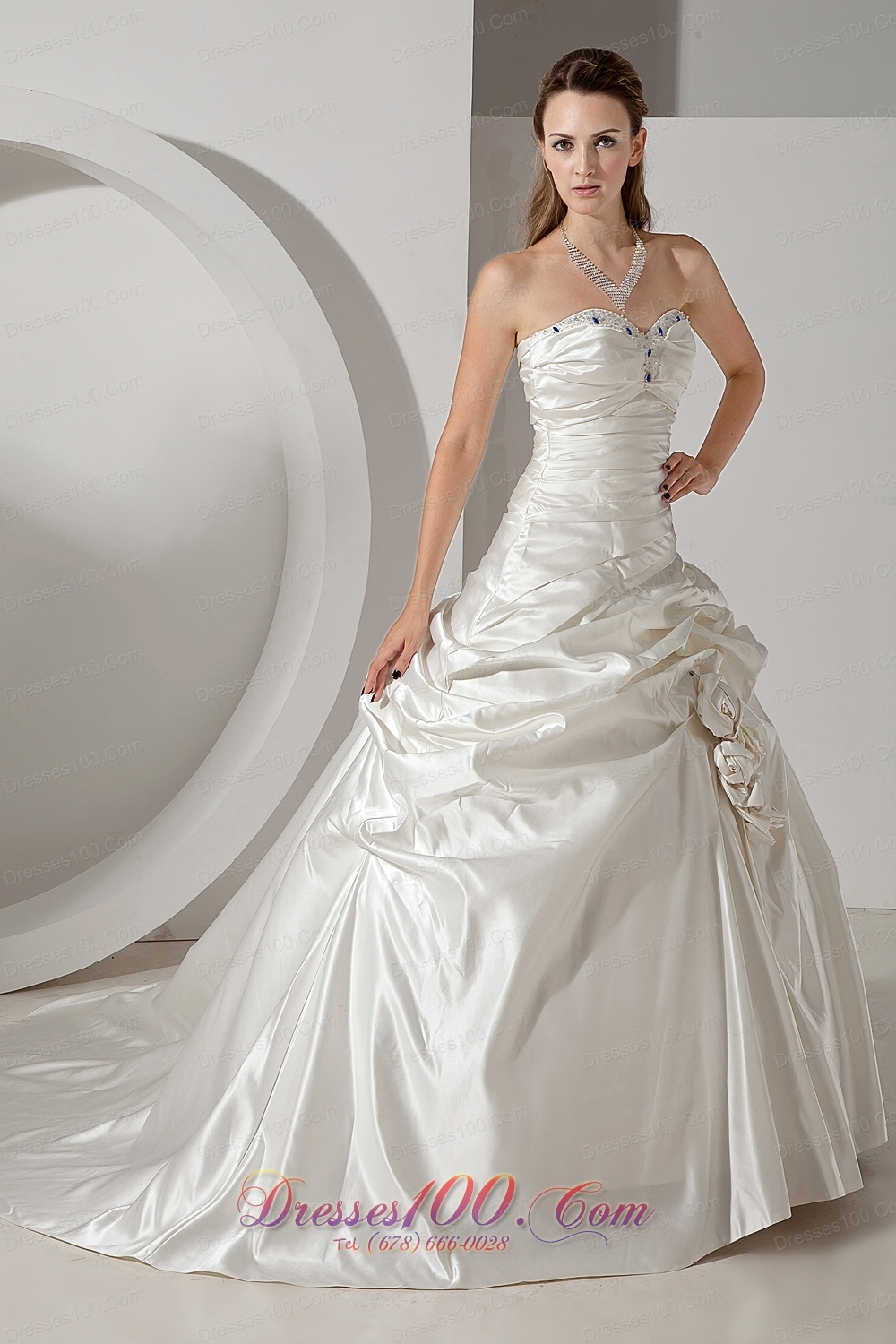 Gorgeous Ruch Beaded Wedding Gowns Sweetheart Chapel Train