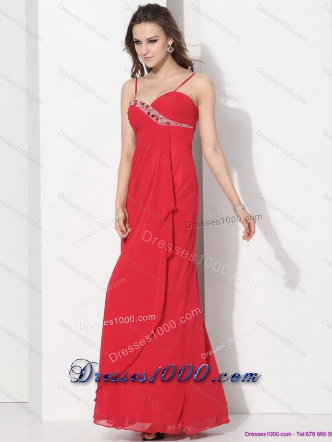 2015 Red Spaghetti Straps Prom Dresses with Ruching and Beading
