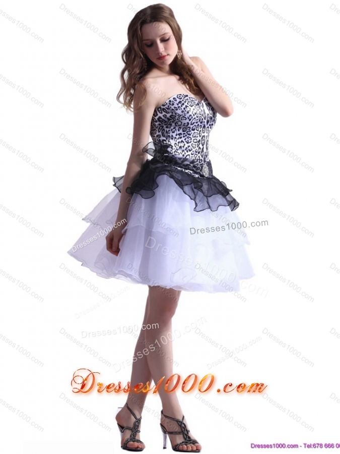 2015 Zebra Printed Sweetheart White Prom Dresses with Ruffled Layers