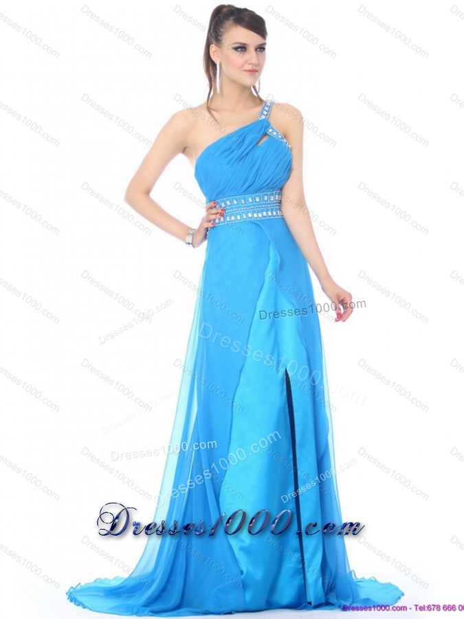 Elegant 2015 One Shoulder Blue Long Prom Dress with Rhinestones