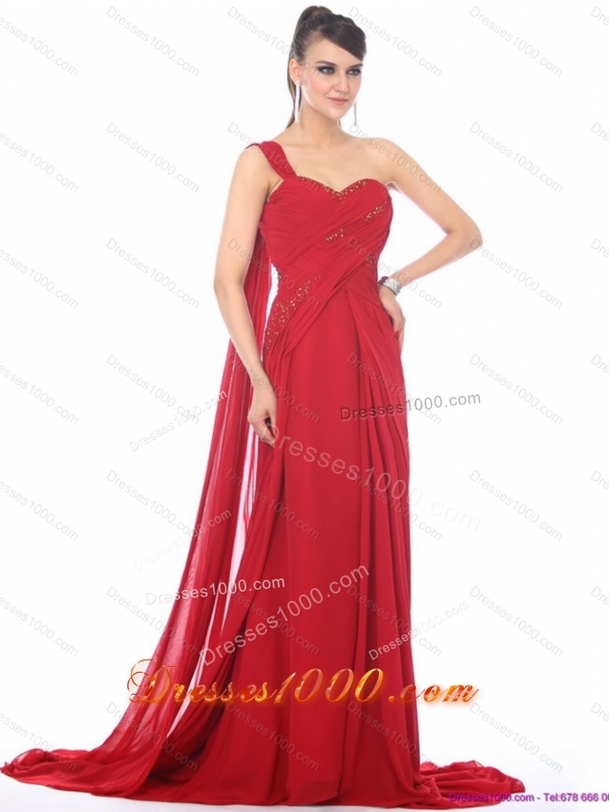 2015 Romantic Beading and Ruching Prom Dress with Watteau Train