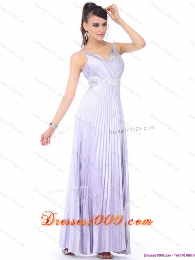 Elegant 2015 Empire V Neck Prom Dress with Pleats and Beading