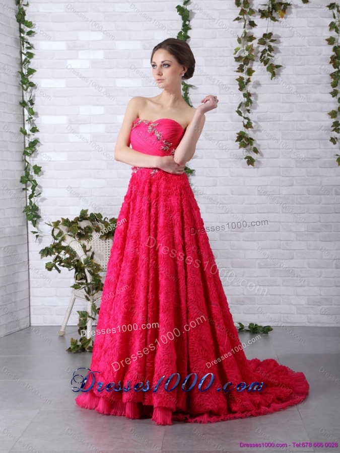 Exclusive Brush Train 2015 Prom Dress with Ruching and Beading