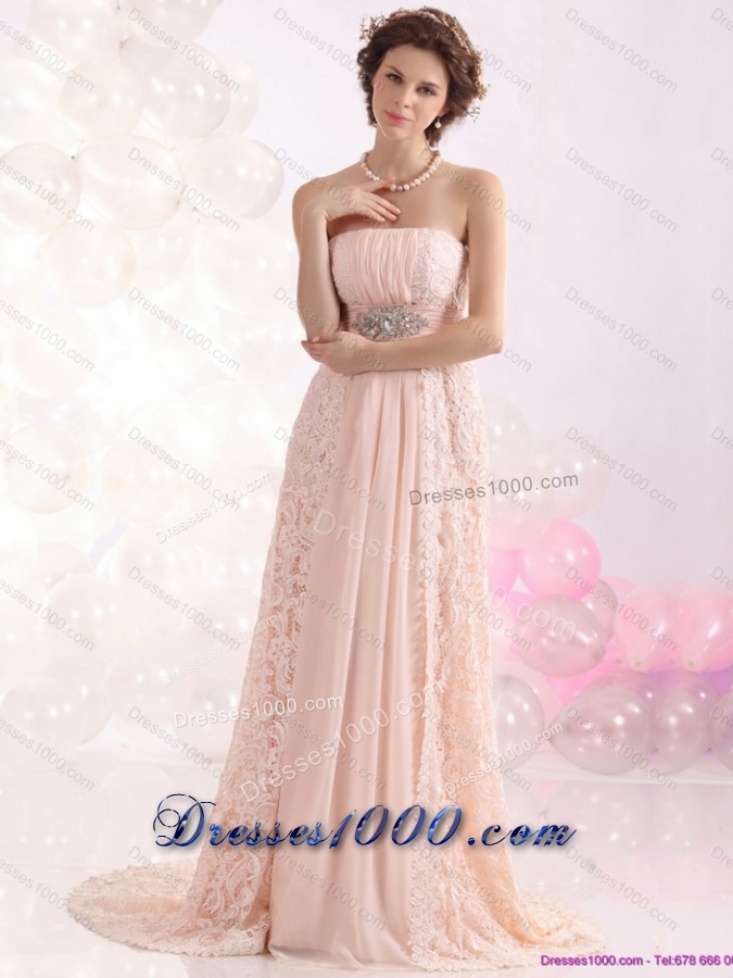 Elegant Strapless Sequins and Lace Prom Dress with Brush Train