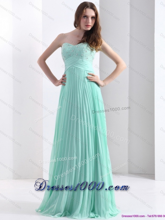 2015 Brush Train Apple Green Prom Dress with Beading and Pleats
