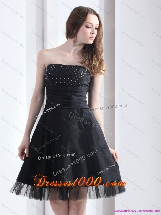 2015 Elegant Strapless Black Prom Dress with Ruching and Beading
