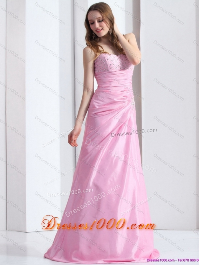 2015 Elegant Baby Pink Sweetheart Prom Dress with Beading and Ruching