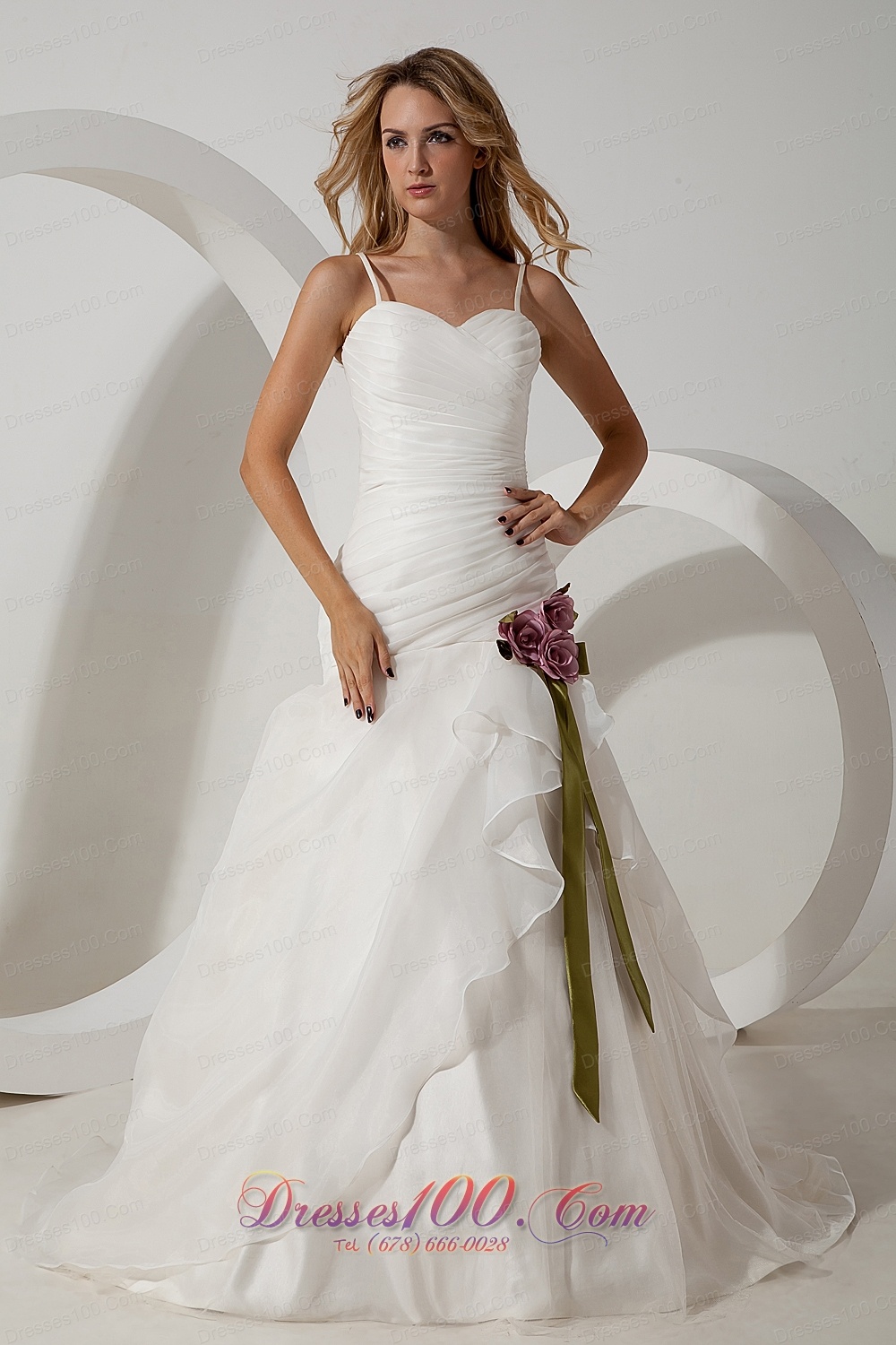 Spaghetti Straps Garden Wedding Dress Brush Train Flowers