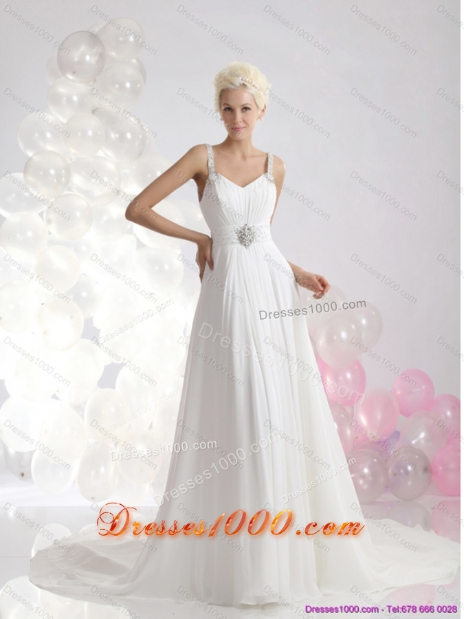 Perfect 2015 Empire Wedding Dress with Ruching and Beading