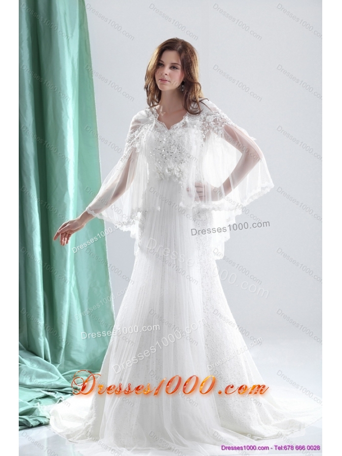Perfect 2015 V Neck Wedding Dresses with Beading and and Ruching
