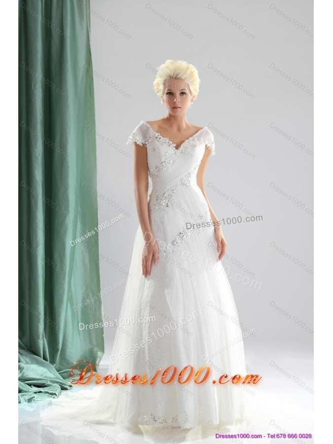 Perfect 2015 Beading and Lace Wedding Dress with Court Train